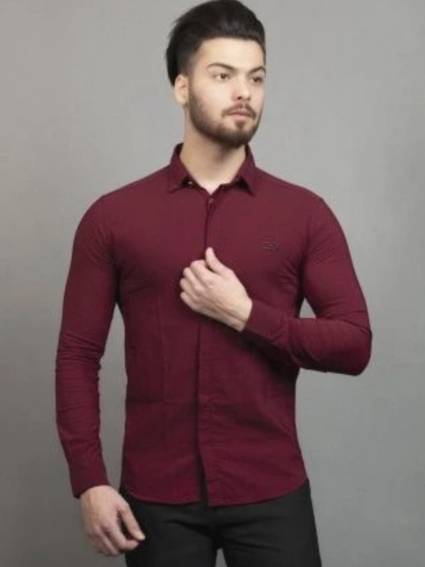 پیراهن مردانه زرشکی کش پنبه اندامی(ارسال رایگان)
