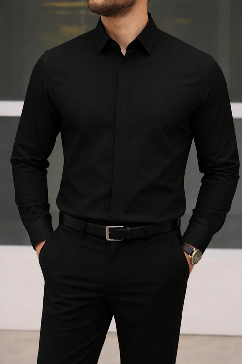 پیراهن مردانه دکمه مخفی دوشین orginal مشکی